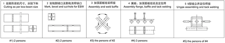 در زیر نمودار جریان تولید برای تولید از صفحات تا پرتو H و بازرسی نهایی قرار دارد.